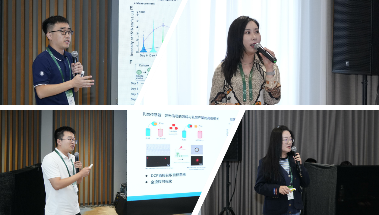 DCP (Digital Colony Picker) technology, presented by Dr. DIAO Zhidian, was introduced as a “grow while screening” workflow. The system cultures single cells in 16,000 microchambers, applies AI-based image analysis to evaluate growth, productivity and stress tolerance, and then retrieves specific target clones using laser-induced bubble extraction. DIAO showed cases including lactic acid overproducers with a 17.6% production boost, as well as filamentous fungi screening that avoids droplet fusion caused by hyphal puncture. Associate Prof. ZHANG Jia described SCIVVS, a probiotic quality control workflow that measures viable count, activity, identity and traceability in 4–5 hours — roughly 20 times faster and at 10% of the cost of conventional methods — and is already being translated into industry standards with leading companies. ZHANG also demonstrated Raman-based monitoring of polyhydroxyalkanoate (PHA) fermentation in 12 minutes (versus the traditional two-day assay) and applications in gut microbe isolation.