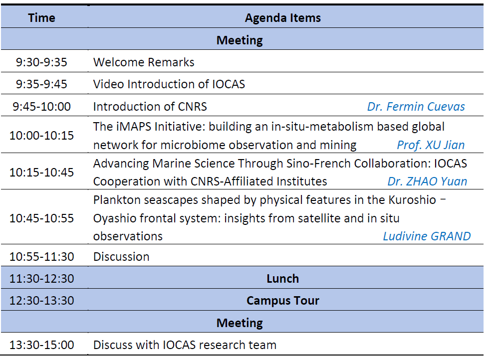 Co‑organized by the Institute of Oceanology, Chinese Academy of Sciences (IOCAS) and CNRS in China.Attendees include representatives from CNRS, Bureau of International Cooperation (CAS), Qingdao Institute of Bioenergy and Bioprocess Technology (CAS), and IOCAS research and international cooperation teams.